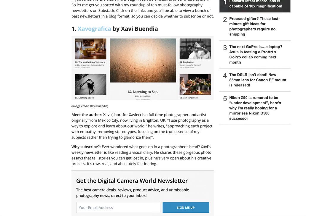 My personal newsletter XAVOGRAFICA got listed as one of the top 10 newsletters to follow on Substack in 2025 by Digital Camera World:
